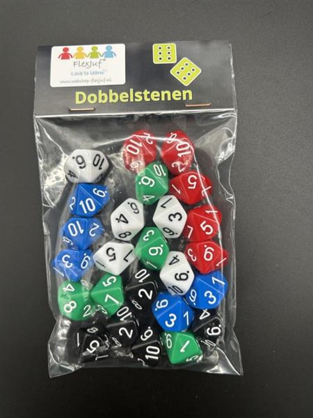 10-kantige dobbelstenen met de cijfers 1-10 er op.