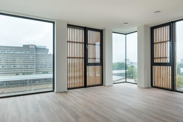 Stap binnen in je eigen Amsterdamse appartement van circa 84 m² en kom binnen in de welkomsthal. Vanuit de hal is er een doorloop naar de open keuken. De fraai afgewerkte Bruynzeel keuken is van alle inbouwapparatuur voorzien. Hier kan je straks uitgebreid koken. In de keuken vind je een inbouw Bosch koelkast, vaatwasser, oven, inductiekookplaat en afzuigkap. In de ruime woonkamer kun je met gemak een luxe zitgedeelte maken en een fijne eethoek. Heerlijk buiten zijn doe je op je eigen loggia. Hier zit je elk seizoen comfortabel door de overkapping.