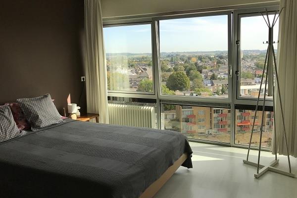Via de centrale hal, brengt de lift u naar de 10de verdieping alwaar dit appartement is gelegen. Bij binnenkomst treft u de hal (8m²) die toegang geeft tot de 2 slaapkamers (resp. 13m² en 9,5m²), het separaat gelegen gastentoilet, de badkamer (5m²) v.v. een ligbad, een inloopdouche met regenshower en een moderne wastafel. De woonkamer (35,5m²) geeft middels de grote glazen pui een schitterend uitzicht. De half open keuken (12m²) is af te sluiten en is v.v. alle moderne apparatuur zoals een heteluchtoven, een magnetron, een vaatwasser, een combinatie ijskast-vriezer, een ijskast en keramische kookplaat. Vanuit de keuken of woonkamer kunt u het balkon (10m.²), dat op het Zuiden is gelegen, betreden.