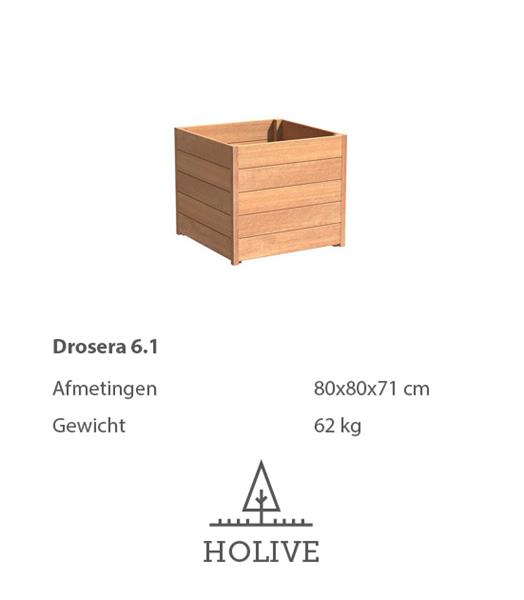 Deze hardhouten plantenbak wordt geleverd in de maat 80x80x57 cm.
