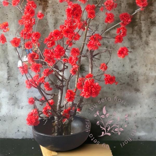 150-160cm hoog. Rode bloesem . Luchtig vanuit de basis / voet over de echte houten boom takken verwerkt.
