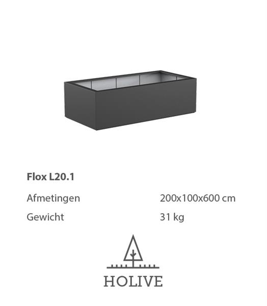 Deze polyester plantenbak wordt geleverd in de maat 200x100x60 cm.