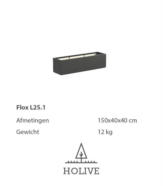 Deze polyester plantenbak wordt geleverd in de maat 150x40x40 cm.