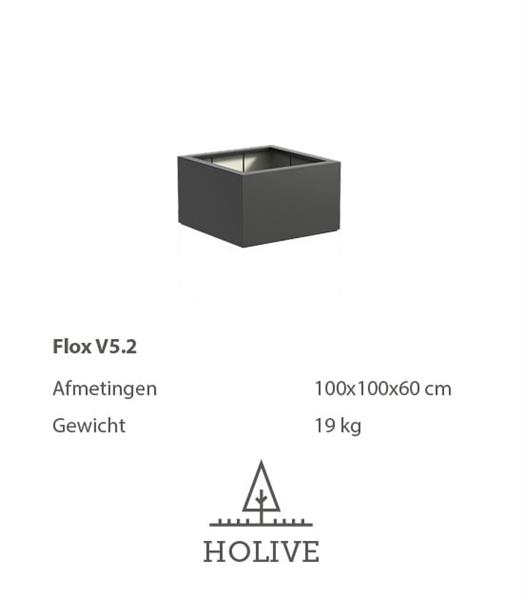 Deze polyester plantenbak wordt geleverd in de maat 100x100x60 cm.