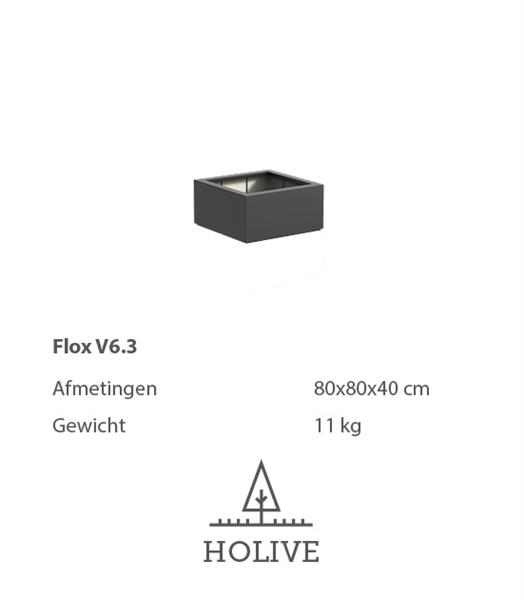 Deze polyester plantenbak wordt geleverd in de maat 80x80x40 cm.