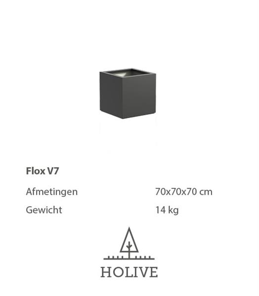 Deze polyester plantenbak wordt geleverd in de maat 70x70x70 cm.