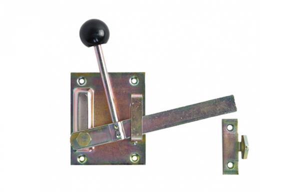 Levering: 1 x poortslot, geel verzinkt met knop en vanger.